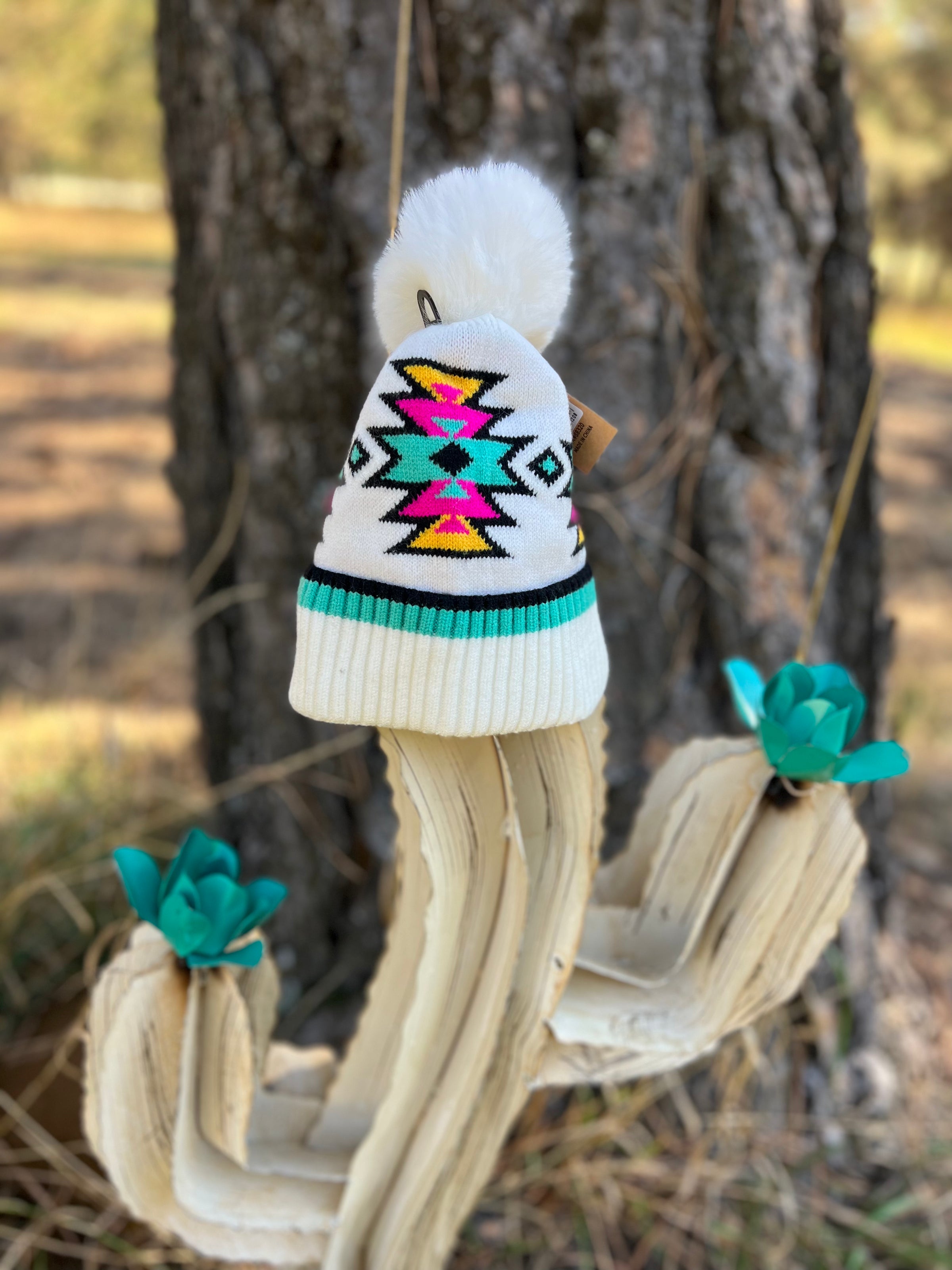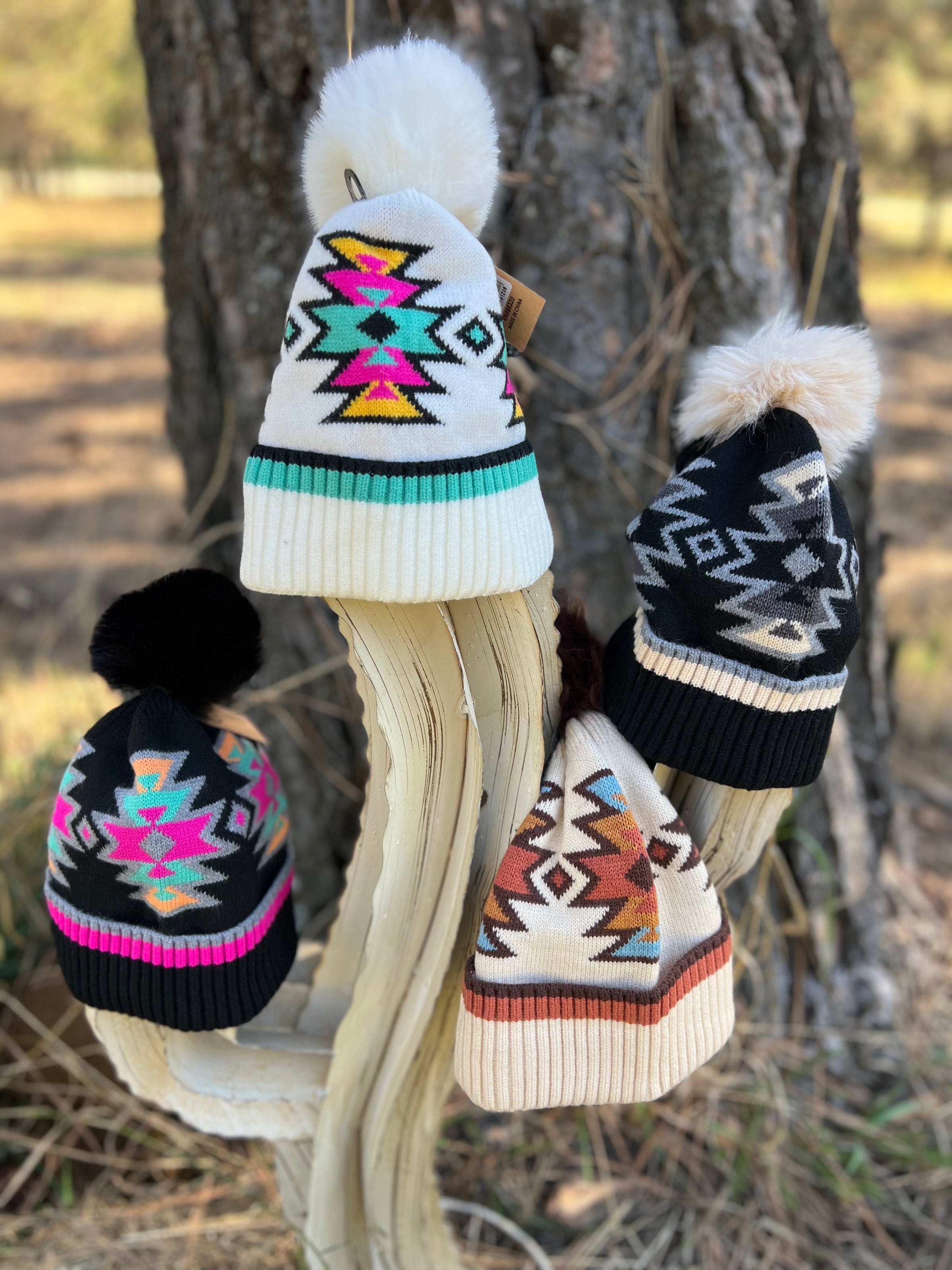 Can't stop won't stop with these gorgeous beanies! What a beautiful pattern reminiscent of the southwest in colors to die for - really, this is one of our new favorite additions!