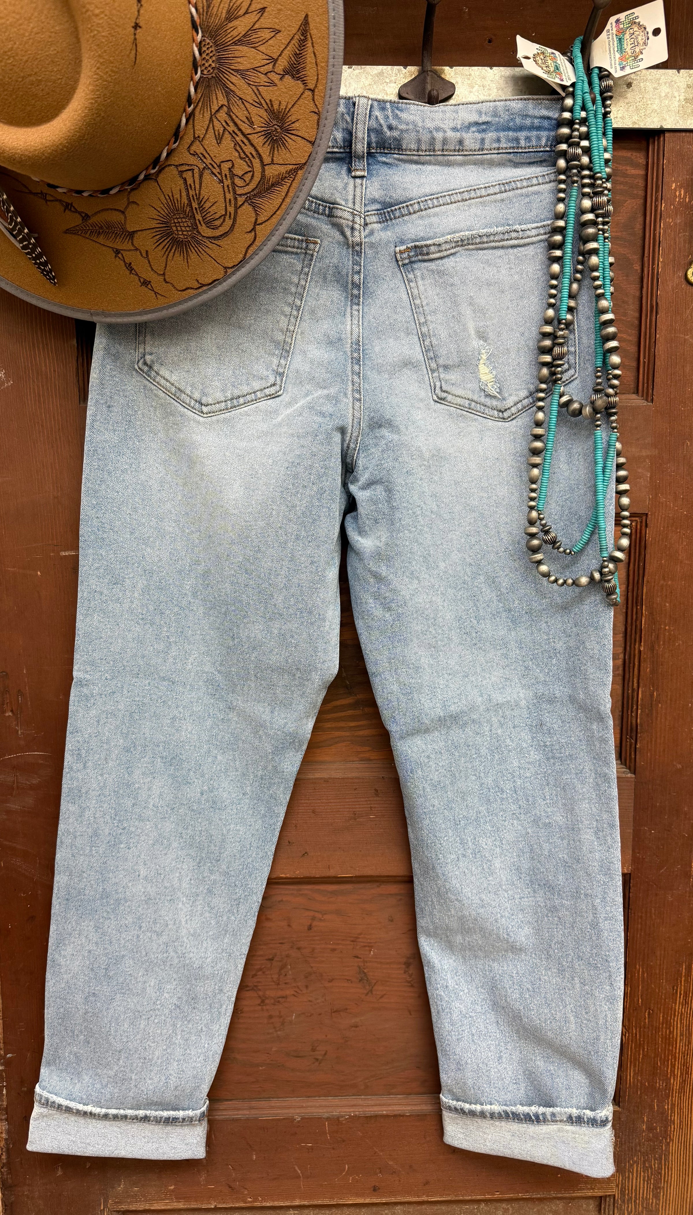 Our classic high waisted mom jeans with slight distressing & clean hem. A classic made for everyday wear. Button & Zipper Closure Medium Wash Clean Hem Stretch