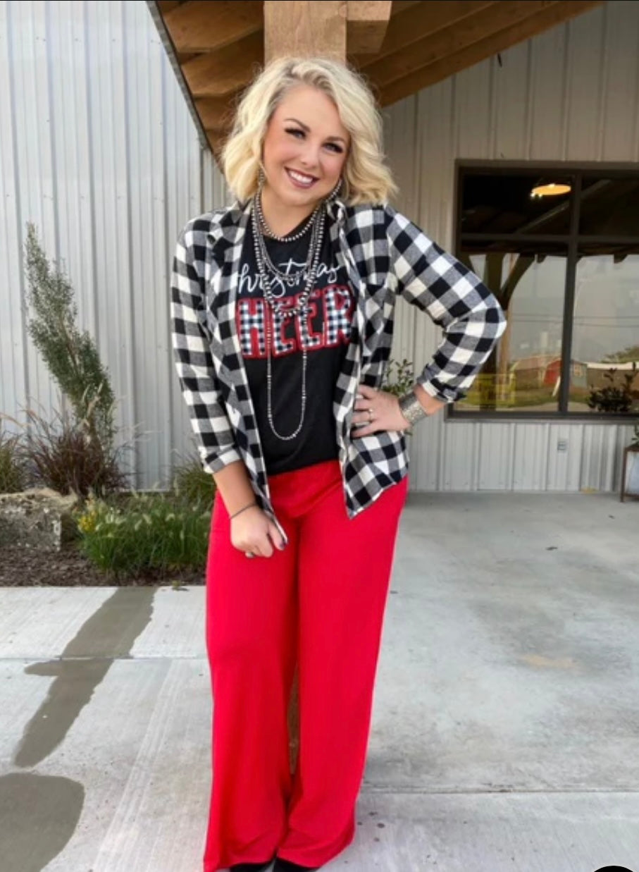 Y’all – these are just the funkiest little pair of wide-leg palazzo pants you’ve ever seen. They hit just right at mid-waist making your top’s front-tuck that much cuter! A true show-stopper you’ll want for dressier days catching the game.