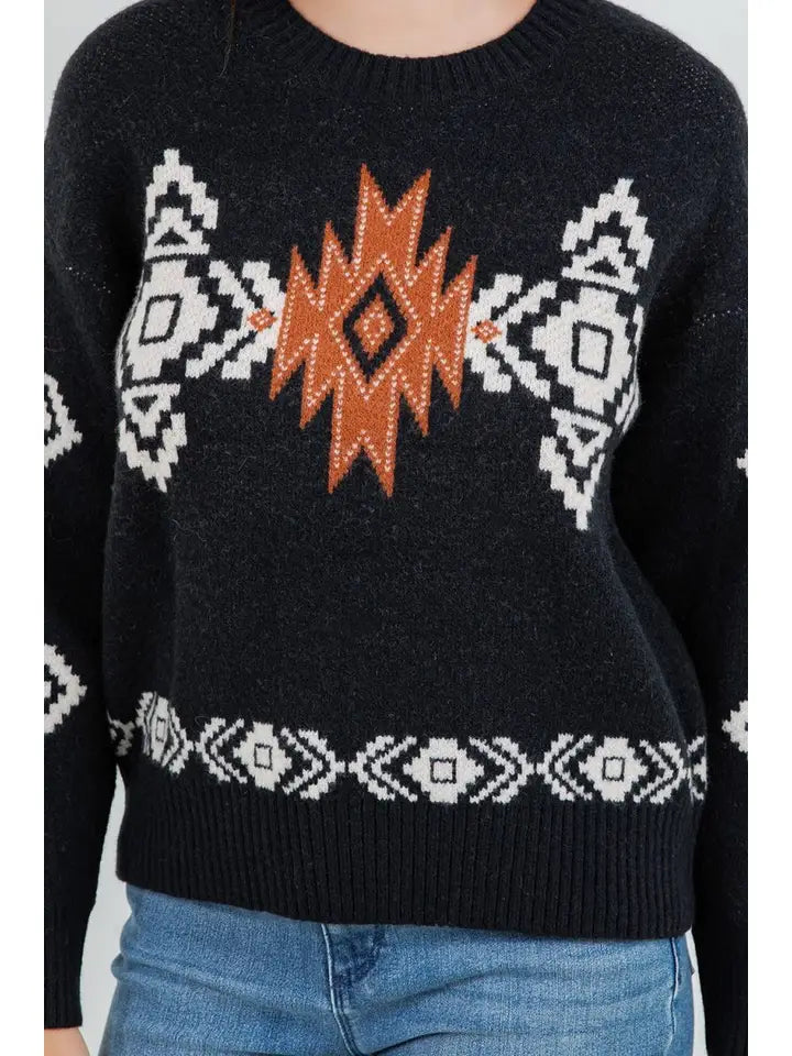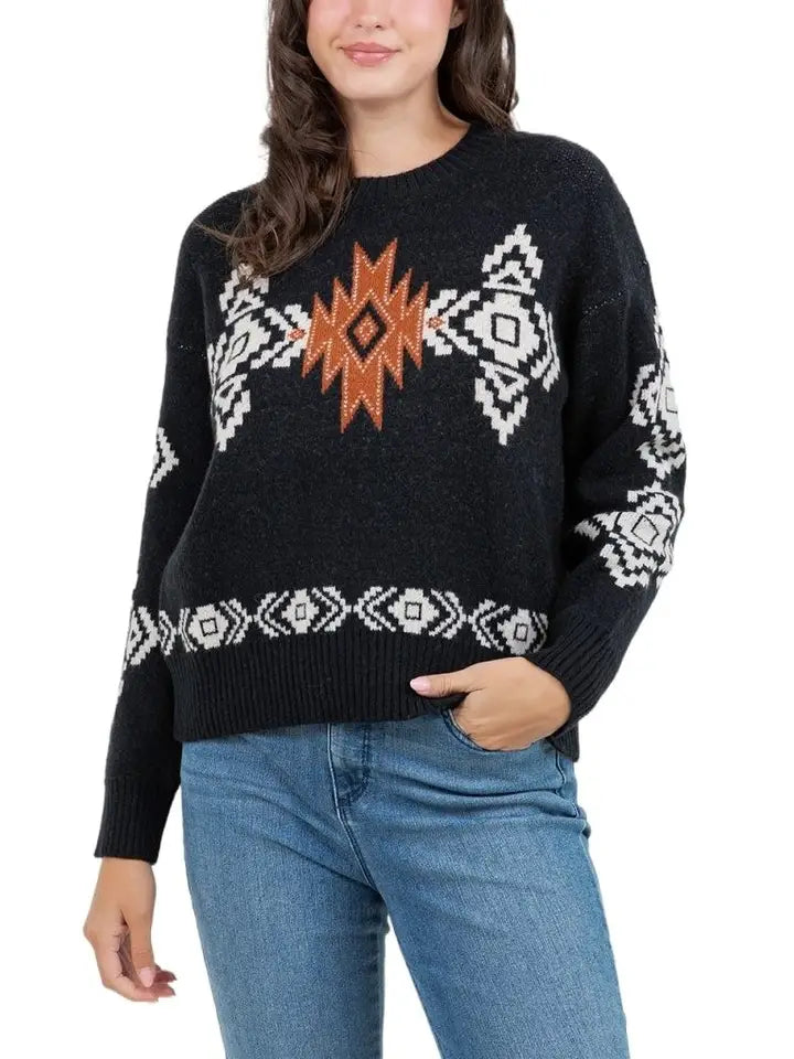This Southwestern Jacquard Knit Sweater combines cozy warmth with distinctive design. Crafted from a blend of acrylic, polyamide, and polyester, it offers softness, durability, and ease of care. The bold jacquard pattern and geometric centerpiece create a standout look inspired by Southwestern motifs, perfect for elevating your casual wardrobe. Ideal for layering, this sweater delivers both comfort and style with expert craftsmanship.